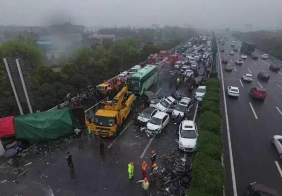4月2日下午13时许,沪蓉高速横林枢纽往东南京往上海方向,2辆大货车相撞翻车,导致3辆大客车、20辆小客车在多点多段相继相撞,事故一共造成3死31伤。